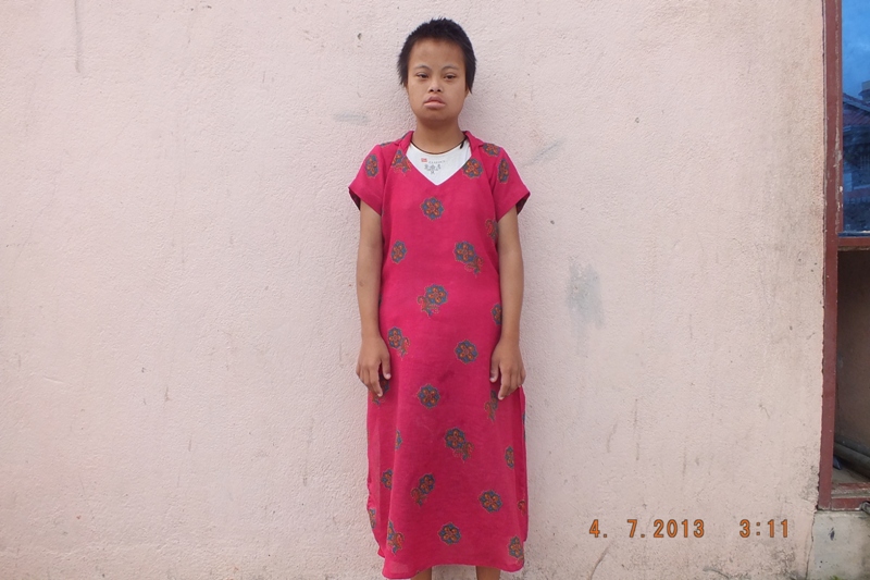 When she admitted in Sagarmatha children Home, at that time her condition was unhealthy, week, and mentally retired. She could not eat by herself, and could not understand toilet habits and no eating habits. She used to sleep at night very scarcely. Now she feels comfortable. She tries to read and write. She likes to watch movies and picture of book. She is stable child and some time she laughs and likes to play lightly game. She has Down’s syndrome. She doesn’t speak any word but she can feel, taste and can understand bits of sign language. She hears word but shows action very slow. She is studying in Children home slowly and slowly.